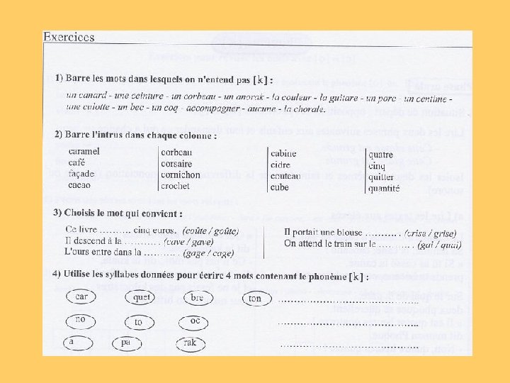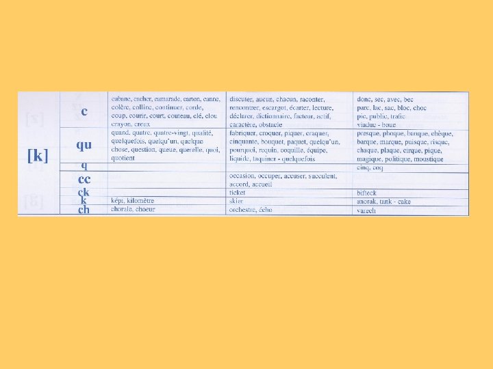 De temps en temps, l’enfant gentil et sérieux fait une bêtise. nombre de lettres: 49 nombre de lettres ou groupes de lettres qui correspondent à un son: 31 D e t em p s en t em ps, l’ en f an t g en t il et s é r i eu x f ai t u ne b ê t i se. lettres (ou groupe de lettres) qui correspondent à plusieurs sons lettres (ou groupe de lettres) différentes pour un même son lettres qui ne correspondent pas à un son les mots dont la prononciation pourrait correspondre à des graphies différentes