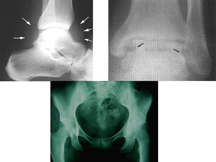SEPTIC ARTHRITIS • Radiographic changes – Early: • Soft tissue swelling Joint space widening – Late (2 -3 w): • Erosion • Joint space narrowing