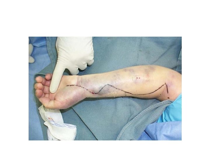 CS • Complications: - Leg: Anterior compartment (foot drop) Deep post compartment (clawed toes/anesthesia sole) Volar compartment (acute Volkman’s ischemia/contracture)