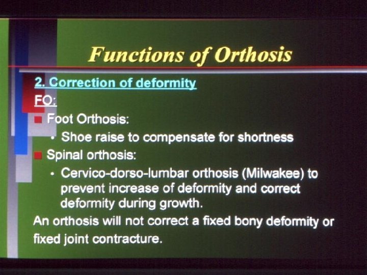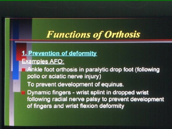 Functions Of orthosis: Facilitates Mobilisation § Paralysed or weak limbs Will be able to support weight bearing if fitted with suitable orthosis § This is very important in cases of Polio or other paralytic disorders