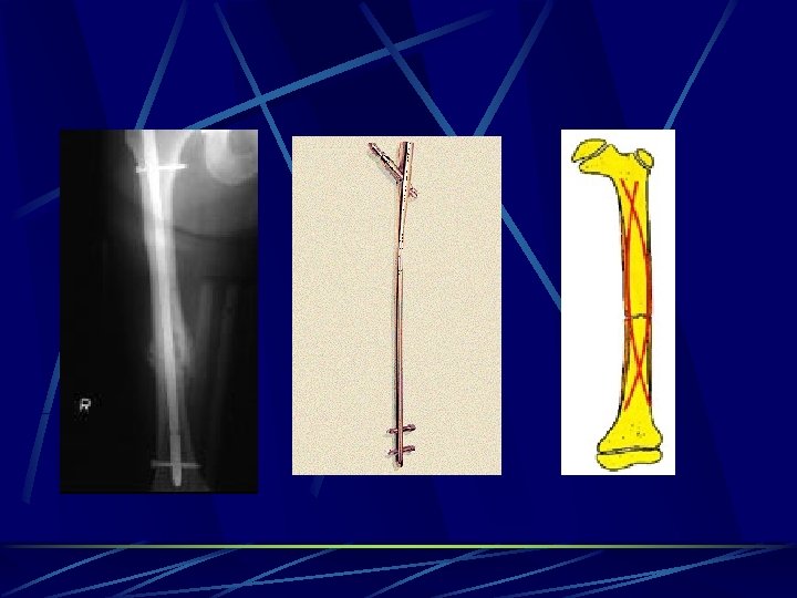 Intramedullary nailing widely accepted operate like an internal splint allows for compressive forces at the fracture site, which stimulates bone healing minimally invasive procedures femoral shaft fr. UFN, tibial shaft fr. UTN; humeral shaft fr. UHN. ESIN Elastic stabilization intramedullary nailing TEN – titanium elastic nail Intramedullary nails: 1. flexible or rigid, 2. locked (maintain alignment and length, and limit rotation) or unlocked, 3. reamed or unreamed,