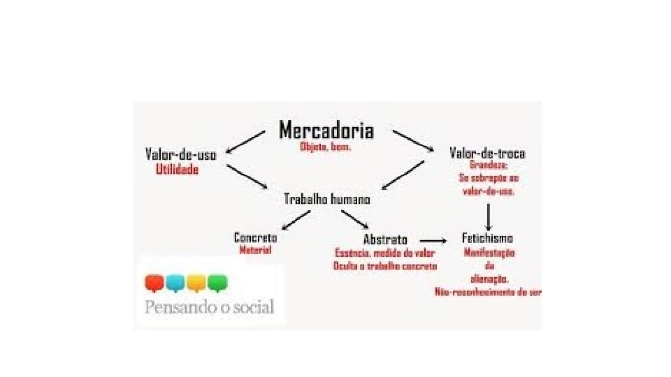 O que é MERCADORIA ? Trabalho humano concentrado e não pago. Ao trocar mercadorias, o homem compara trabalho humano. A mercadoria expressa, pois, relações sociais Aparece como uma coisa dotada de valor de uso (utilidade) e de valor de troca (preço) Exemplo de relações: a mercadoria 3, 00 se relaciona com a mercadoria sabonete marca x a mercadoria 500, 00 se relaciona com a mercadoria menino-que -faz-pacotes A mercadoria 300, 00 se relaciona com uma consulta médica As coisas-mercadorias começam a se relacionar umas com as outras como se fossem sujeitos sociais, dotados de vida própria: 01 apartamento estilo “mediterrâneo” = um modo de viver 01 cigarro marca X = um estilo de vida 01 calça jeans griffe X = um vida jovem