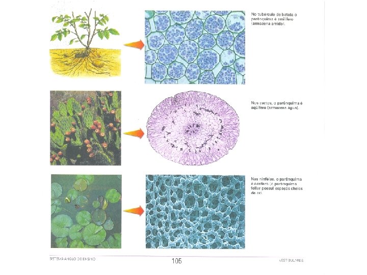 • a. 2 - Parênquima Aquífero: reserva de água, contém substância mucilaginosa que retém líquidos em plantas suculentas ou de climas secos, como cactos (xerófitas):