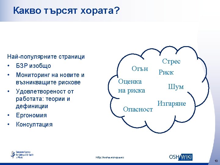 Какво е OSHwiki? § Provides an authoritative source of up-to-date and in-depth information on OSH topics § Promotes the role of the OSH community in building safe working environments § Plays a key role in EU-OSHA’s strategy to make Europe a safer, healthier and more productive place to work http: //osha. europa. eu 3