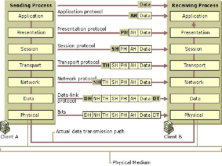 Fizički sloj (Physical Layer) q Ovaj sloj se za razliku od viših slojeva u potpunosti odnosi na hardware i zadužen je za tri primarne funkcije: � Standardizacija komponenti (adapteri, interfejsi mrežnih uređaja, kablovi i konektori). Način predstavljanja podataka (modulacija i kodiranje) i kontrolne standarde. Signalizacija, sinhronizacija signala, predaja, prijem i prenos medujumom. � �