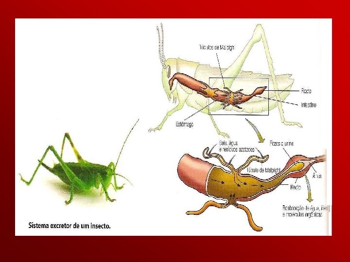 Sistema excretor da minhoca Com base nas duas figuras referentes aos sistemas excretores do insecto e da minhoca, responde à questão anterior. Tal como acontece com a planária, também com os insectos e com a minhoca, é a existência de um sistema excretor que permite a manutenção dos valores de pressão osmótica interna.
