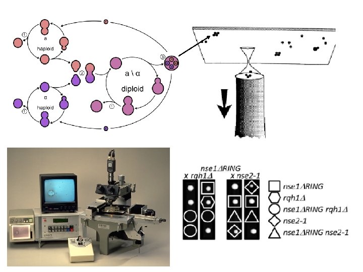 Příprava mutant • Studium funkce genu – fenotyp delece či mutace • Nezbytný gen = smrt – plasmid nebo mutanty • Přežívají – křížení tj. hledání funkčně příbuzných genů – Studium funkčních homologií – dvojité mutanty (synthetic lethal x epistatic) -V případě esenciálních genů je diploid transformován plasmidem s exprimovatelným wt genem – po jeho vypnutí se sleduje „terminální fenotyp“ -Pro sledování terminálního fenotypu jsou však lepší „kondicionální mutanty“ tj. teplotně (nebo chladově) sensitivní mutanty -Mutagenese (většinou náhodná) a následná selekce markeru či fenotypu (např. mutace v metabolických drahách, sekreci, morfologii atd. )