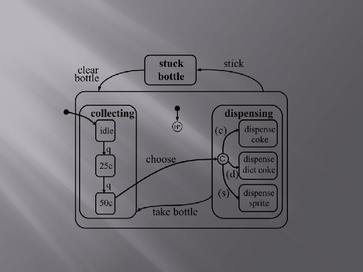 • UML Statechart – Developed by Object Management Group (OMG). – Extend the properties of Harel’s statecharts with some new features.