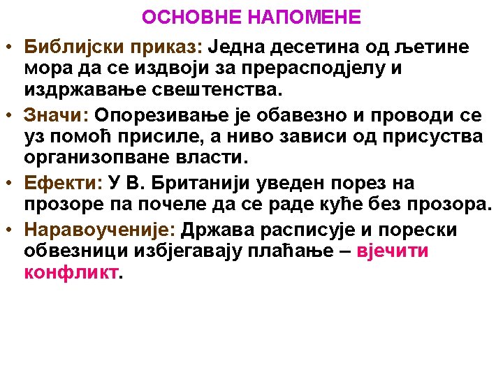 OSNOVNE NAPOMENE Žan Batist Kobler, ministar finansija Luja XIV: “Vještina oporezivanja leži u tome da se guska očerupa tako da se uz što je moguće manje gakanja prikupi što je moguće više pperja”. Newsweek, 16. april 1984. str. 69.