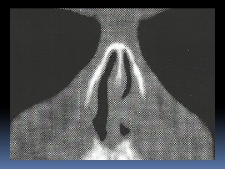 Melanoma naso-sinusale 4% dei tumori maligni naso-sinusali Incidenza 0. 2 – 0. 3/milione I melanociti presenti nel distretto naso-sinusale: 21% dei soggetti Incidenza maggiore nell’età più avanzata, media 64. 3 anni Sintomi di esordio più comuni: ostruzione nasale monolaterale, epistassi Obbiettivamente si apprezza neoformazione polipoide, di aspetto carnoso, può essere pigmentata o ulcerata Maggiori sono le dimensioni al momento della diagnosi peggiore è la prognosi Il trattamento di elezione è quello chirurgico Difficile ottenere margini di sezione negativi