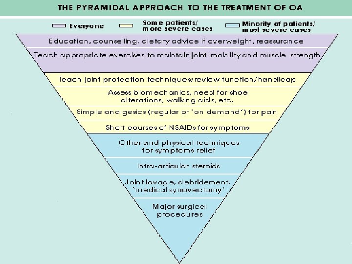 Treatment Principles • Education • Physiotherapy – Exercise program – Pain relief modalities • Aids and appliances • Medical Treatment • Surgical Treatment