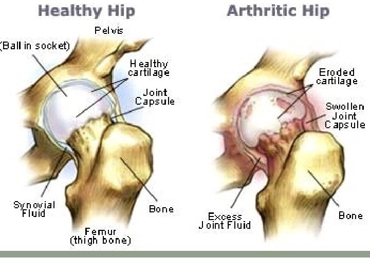 Ageing process in joint cartilage Defective lubricating mechanism Incompletely treated congenital dislocation of hip