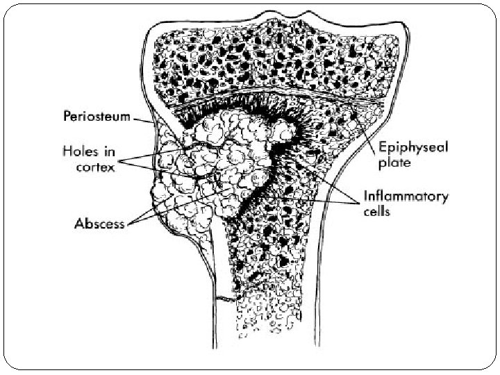 • It may occur in adults also due to spread of infection directly from another site or through compound fractures. • Haematogenous spread is rare