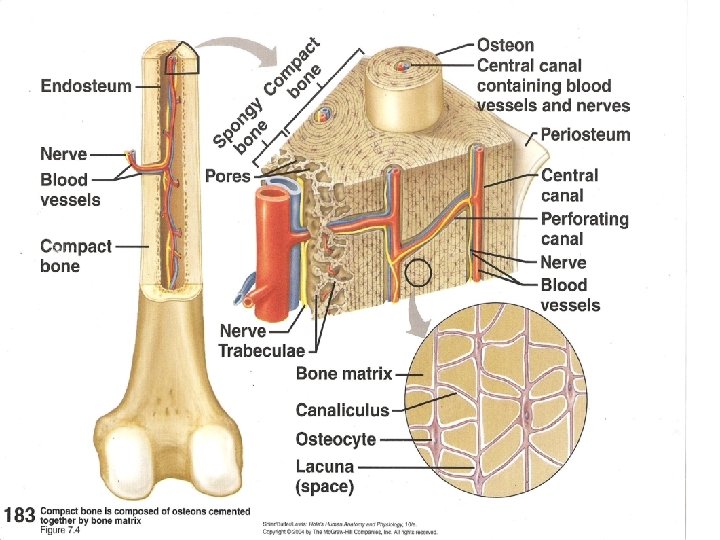 Osteon/Haversion Systemfunctional unit of bone Central (osteonic) canal - for B. V. , and nerves Lamellae – sheets/layers of matrix Lacunae – space for a bone cell