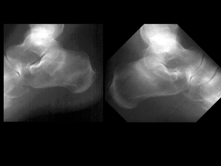 Bilateral calcaneous stress fractures • Findings: – Bone scan shows intense activity in both calcanei = non-specific – Plain films are diagnositic • ddx: – NONE! – This is an Aunt Minnie!