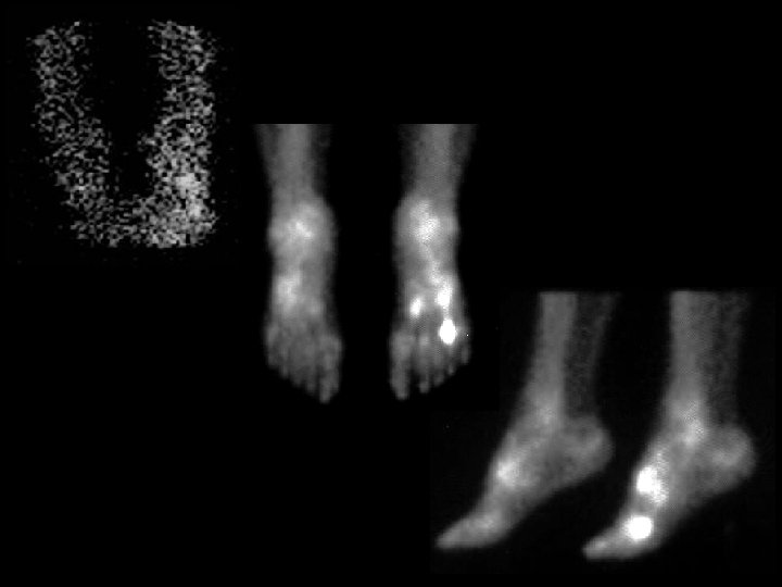 Stress fracture • Findings: – Three phase bone scan is positive at the left 4 th MC head • ddx: – Healing fracture – Osteomyelitis – Osteoid osteoma – Charcot joint