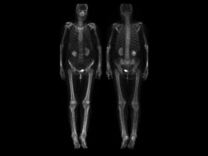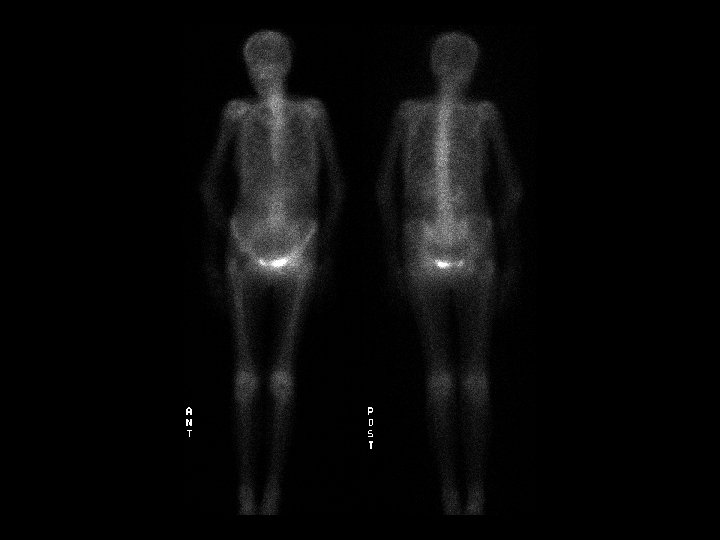Superscan • • Findings: – Diffusely increased radiotracer activity of the skeleton – No renal or soft tissue uptake ddx: – Diffuse metastates – Metabolic • Renal osteodystrophy