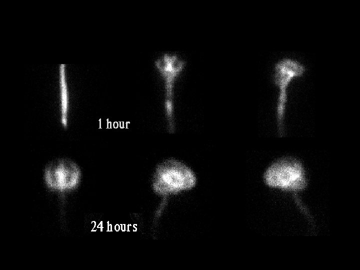 Normal pressure hydrocephalus • • • Findings: – Tracer reflux into ventricles – persistent ventricular activity > 24 hrs Dose / tracer: 0. 5 m. Ci In-111 DTPA Technique: – LP – inject – posterior image over TL spine confirm injection in 15 -30 min – image at 4, 24, 48 hrs (2, 12, 24 hrs kids) Normal study: – basilar cisterns - 4 hrs – convexities - 24 hrs ddx: – obstructive, communicating hyrocephalus (e. g. meningitis)