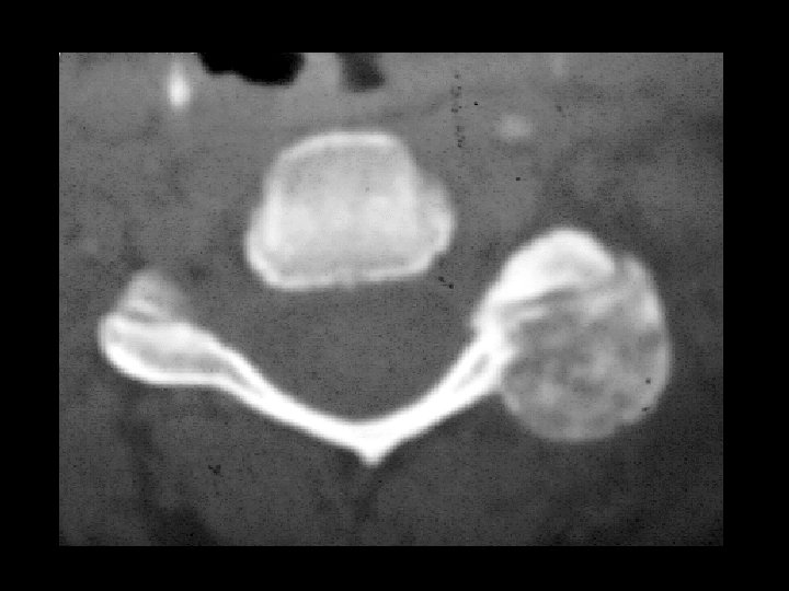 Osteoblastoma • Findings: – Very intense uptake in the posterior left cervical spine – CT scan is diagnositc • ddx: (intense uptake) – Osteiod osteoma – Fracture – Paget's disease – Metastasis – Osteosarcoma