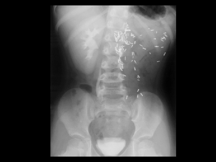 Sickle cell anemia • Findings: – Bone scan shows increased activity in the kidneys, a small spleen, and knees • ddx: – NONE! – This is an Aunt Minnie!