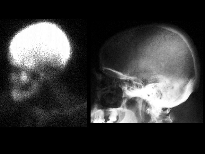 “Brain Death” • 20 m. Ci Tc-99 m DTPA, i. v. • “No evidence of effective cerebral perfusion” (this study does not evaluate the brainstem effectively) • Good perfusion of external carotid arteries, facial structure = “Hot nose sign” • This test used to aid in the determination of brain death • Ddx: – NONE! – This is an Aunt Minnie!