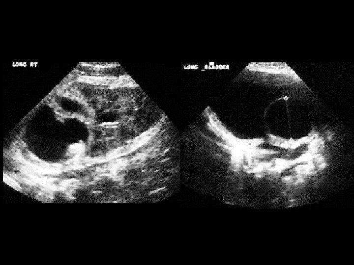 Renal Duplication • • 1. 1 m. Ci Tc-99 m MAG 3, i. v. delayed uptake and no excretion in the right upper pole and filling defect in the bladder dilated upper pole and ectopic ureterocele by US Weigert-Meyer Rule – upper pole obstructs, ureter inserts medially and caudally – lower pole refluxes, inserts normally