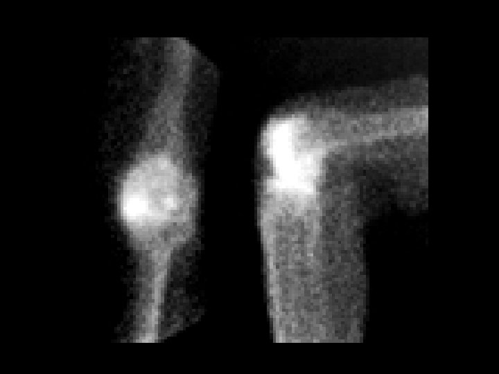 Osteoblastoma • • • 4. 4 m. Ci Tc-99 m MDP, i. v. focal intense activity in the proximal humeral metaphysis eccentric oval lytic lesion with periosteal reaction also occurs in the posterior elements of the spine and long bones histologically similar to osteoid osteoma ddx: – – giant cell tumor ABC non-ossifying fibroma osteosarcoma