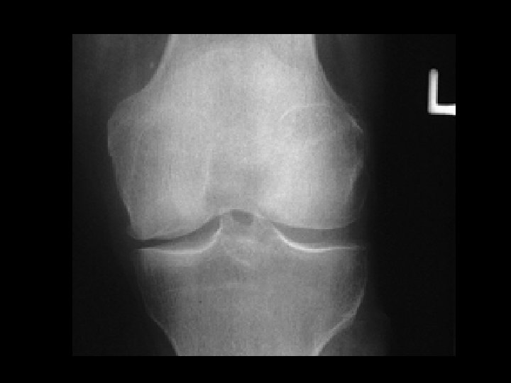 Spontaneous osteonecrosis of the knee (SONK) • Findings: – Intense uptake in the medial femoral condyle – Plain radiograph shows flattening of the medial femoral condyle and subchondral lucency • ddx: – Fracture – Osteoarthritis – Osteomyelitis – Tumor