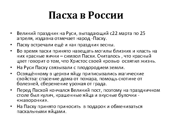 ASSOZIATIONEN • Das Frühstück -завтрак, die Kircheцерковь, das Lied- песня, die Wocheнеделя, die Familie-семья, das Fest – праздник, das Symbol – символ, der Brauch – обычай, der Frühling – весна, das Essen – еда, die Zeit –время, der Sonntag – воскресенье, der Tisch- стол, die Mutter – мама, das Brot – хлеб, das Spiel – игра, das Ei –яйцо, die Ferien –каникулы, das Mädchenдевочка.