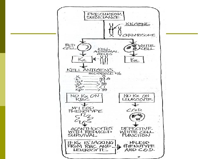 Kx Substance p Kx substance is present on RBCs & WBCs p Kell genes convert Kx substance into the Kell Ags on RBCs p Kell genes do not convert Kx on WBCs