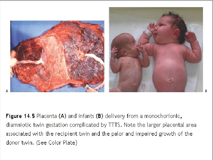 *recipient twin: -hypervolemic - hyperviscous - hypertensive - polyhydramniotic due to increased renal blood flow *Either twin : hydrops
