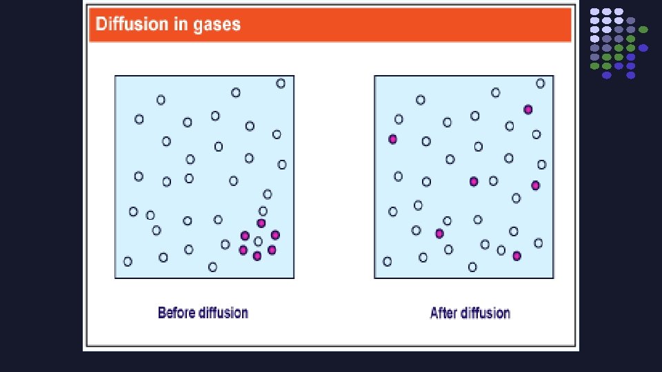 Graham’s Law l Relates the rate of diffusion of gases to their molar masses (GFM) l Diffusion is movement of gas particles from an area of high concentration to an area of low concentration l If someone in a room uses a deodorant spray, it doesn't take long for everyone else in the room to smell it. This is because of diffusion.