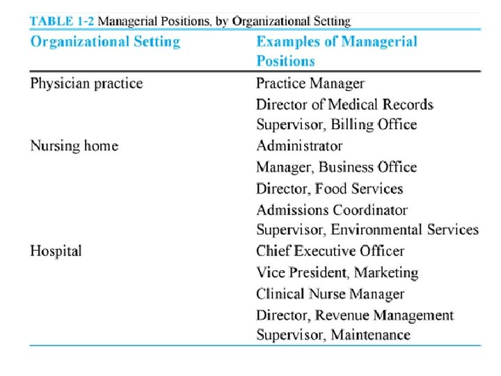 Organizational structure varies from hospital to hospital. • Large hospitals have complex organizational structures. • Smaller hospitals tend to have much simpler organizational structures.