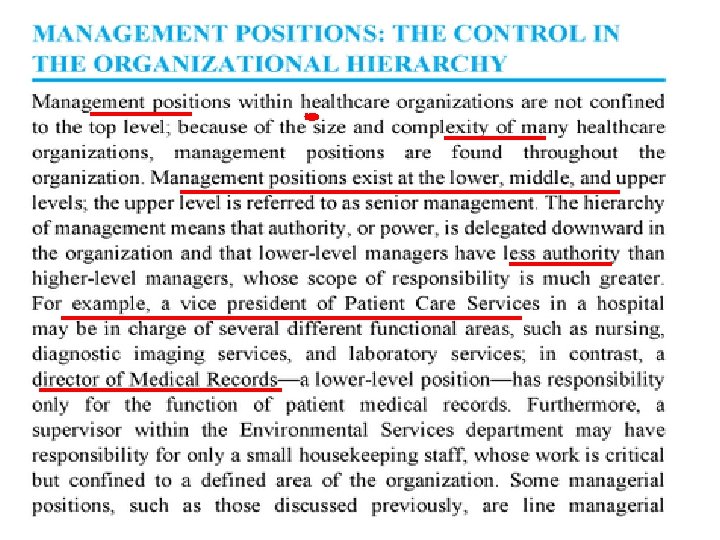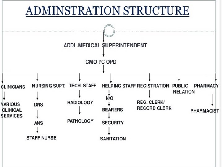 §Organizational Structure refers to levels of management within a hospital. • Levels allow efficient management of hospital departments. • The structure helps one understand the hospital’s chain of command.