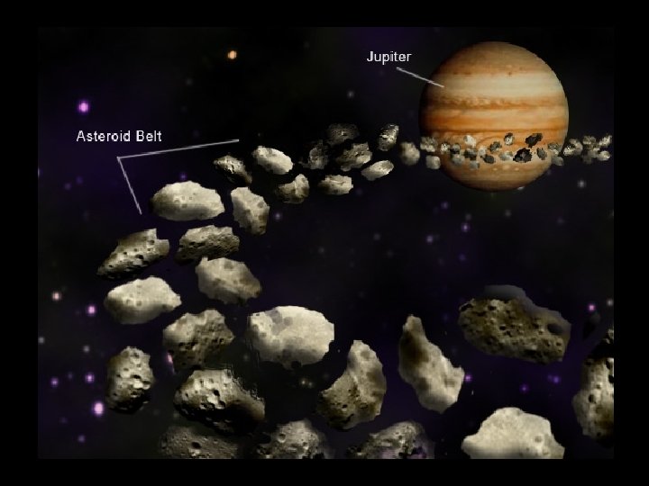 Asteroid • Most asteroids are located in an area between the orbits of Mars and Jupiter called the Asteroid Belt. • Why are they located there? • The gravity of Jupiter might have kept a planet from forming in the area