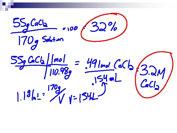 More practice n 55 g of Ca. Cl 2 is dissolved in 115 g of water, what is the mass percent? What is the molarity if the final solution has a density of 1. 1 g/m. L?