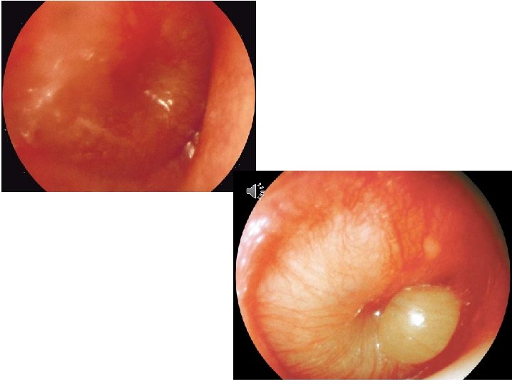 • Stade de l'otite moyenne aiguë catarrhale: • Symptômes: - L'augmentation de mal d'oreille. - Fièvre surtout chez les nourrissons et les enfants. • Signes: - La membrane tympanique apparaît rétractée, uniformément congestionné (notamment te pars flaccide) avec une déformation ou une perte du cône de lumière. La poignée du marteau est importante, en raccourci et plus horizontale que d'habitude. La mobilité de la membrane du tympan est réduite. - Légère perte auditive.