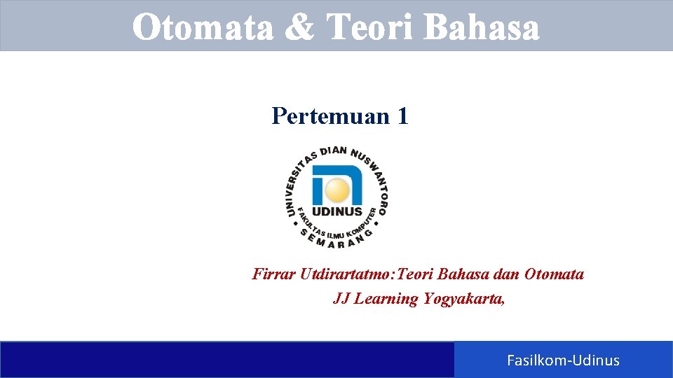 Otomata & Teori Bahasa Pertemuan 1 Firrar Utdirartatmo: Teori Bahasa dan Otomata JJ Learning Yogyakarta, Fasilkom-Udinus