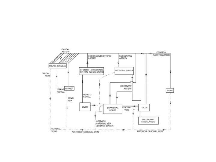 • one per arch -hemi/holobranch) • • Dorsal aorta - caratoids and cardinals lead • to the brain - dorsal aorta to rest of body - subclavian (pectoral girdle) - coeliacomesentteriac (viscera) - renal (kidneys) postcardianal veins - in tunas (Cutaneous arteries)