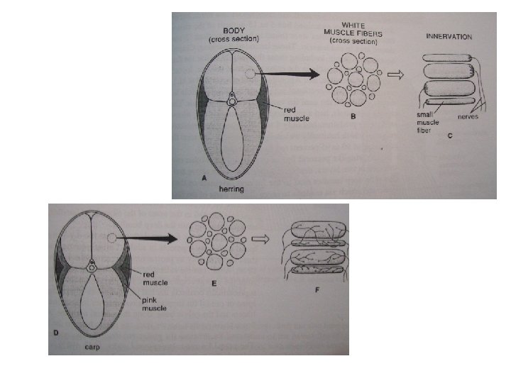 Weird Muscle • Counter current heat exchange system part of heat retention • Pink - intermediate to red and white • Antarctic notothenoids - no • hemoglobin; =yellow muscle in heart (sim. to red)