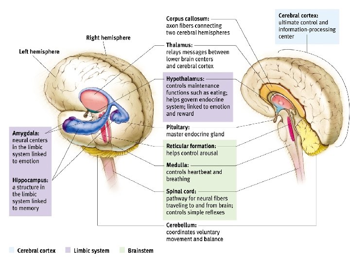 Our Divided Brain • Corpus Callosum Corpus callosum – largest bundle of neural fibers – connects the two brain hemispheres – carries messages between the hemispheres enabling coordinated brain activity – Each hemisphere is connected to one-half of the body in a crisscrossed fashion