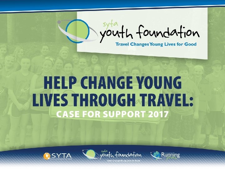 OUR VISION We believe that TRAVEL CHANGES YOUNG LIVES FOR GOOD, and to that end, the SYTA Youth Foundation strives to provide access to travel opportunities for the maximum number of young people that would otherwise be unavailable due to family hardship, budget cuts in school systems or simply lack of the access to or education about travel as a learning experience.