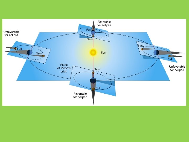 Eclipses • Two types – Lunar eclipse • Earth is directly between the Sun and Moon – Earth’s shadow falls on the Moon • Can only be seen at night – Solar eclipse • Moon is directly between Sun and Earth – Moon’s shadow falls on the Earth • Can only be seen during the day