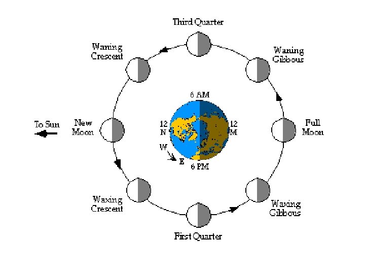 Full Moon • When the moon has revolved half way around the Earth, the Moon’s entire near side is sunlit and can be seen from Earth.