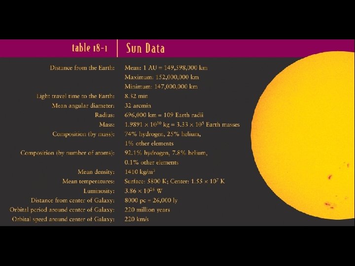 The Sun’s energy is generated by thermonuclear reactions in its core • The energy released in a nuclear reaction corresponds to a slight reduction of mass according to Einstein’s equation E = mc 2 • Thermonuclear fusion occurs only at very high temperatures; for example, hydrogen fusion occurs only at temperatures in excess of about 107 K • In the Sun, fusion occurs only in the dense, hot core