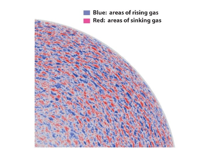A theoretical model of the Sun shows how energy gets from its center to its surface • Hydrogen fusion takes place in a core extending from the Sun’s center to about 0. 25 solar radius • The core is surrounded by a radiative zone extending to about 0. 71 solar radius – In this zone, energy travels outward through radiative diffusion • The radiative zone is surrounded by a rather opaque convective zone of gas at relatively low temperature and pressure – In this zone, energy travels outward primarily through convection
