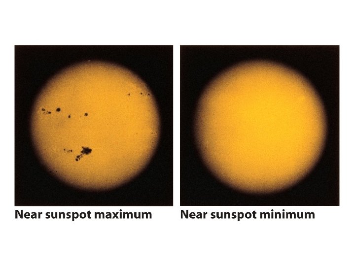 Variations in solar activity • 1610 Galileo observed sunspots • From 1645 to 1715 very few sunspots were observed – Historical records, Flamsteed in 1674 said that 1 st since 1664. • “Little Ice Age”; 1300 to ~ 1850 – – Glaciers advanced in Alps; severe winters Greenland colony fails 1816, year without a summer follows Mt Tambora eruption Weather unstable & unpredictable. • Astronomical evidence that sunspot minima occurs about 20% of the time in a star like the sun • 1958, Sunspot activity was the largest ever observed. • Since 1900, sun is getting hotter, about 1/3 of global warming.