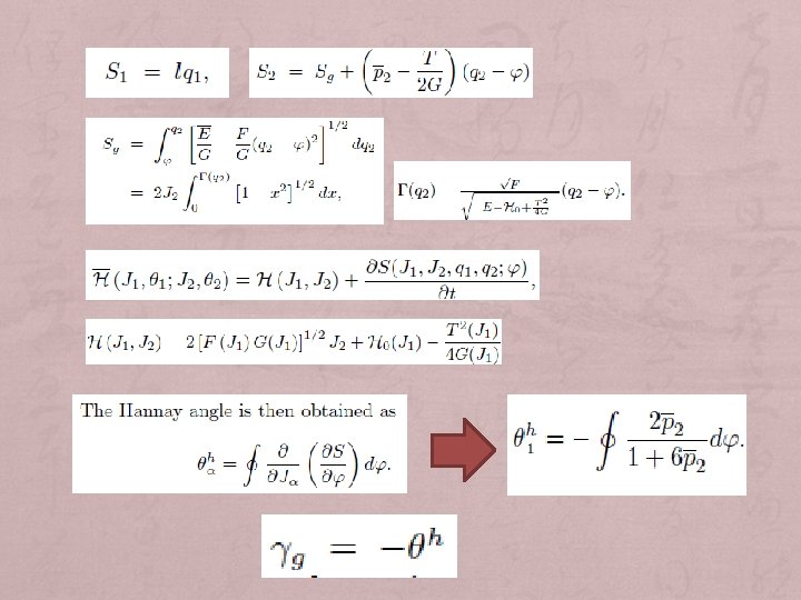 For system is time independent, one has Consider R=R(t) varies with time slowly and R(T)=R(0). In the classical adiabatic evolution, the actions are invariant, but the angles should be where is the so-call Hannay angles, which is only dependent on the path C.