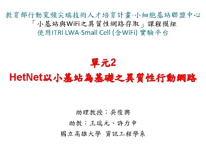 Outline Introduction to Heterogeneous Networks Het Net Heterogeneous