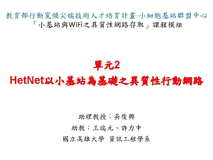 Outline Introduction to Heterogeneous Networks Het Net Heterogeneous
